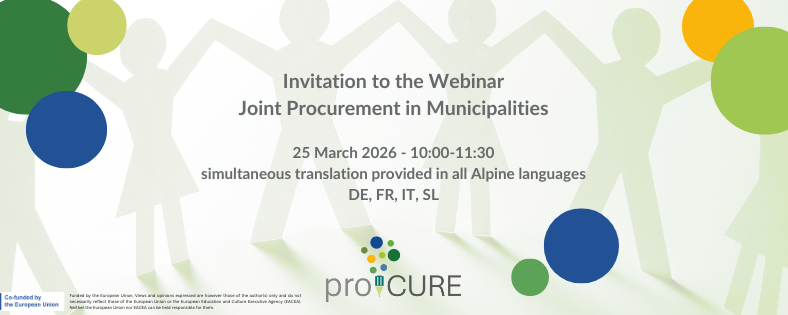 Das proCURE-Projekt unterstützt Kommunen dabei, ihre Kapazitäten im Bereich der nachhaltigen öffentlichen Beschaffung zu stärken. Im Webinar liegt ein besonderer Schwerpunkt auf der gemeinsamen Beschaffung als strategisches Instrument für Effizienz, Innovation und nachhaltige lokale Governance.